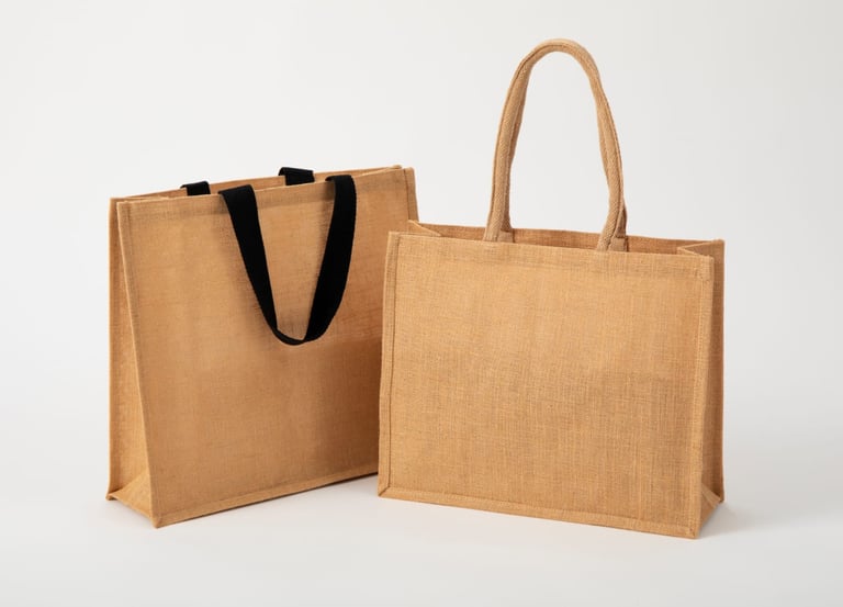 Durable, biodegradable, and stylish jute tote bags perfect for retail, grocery, and promotional use.